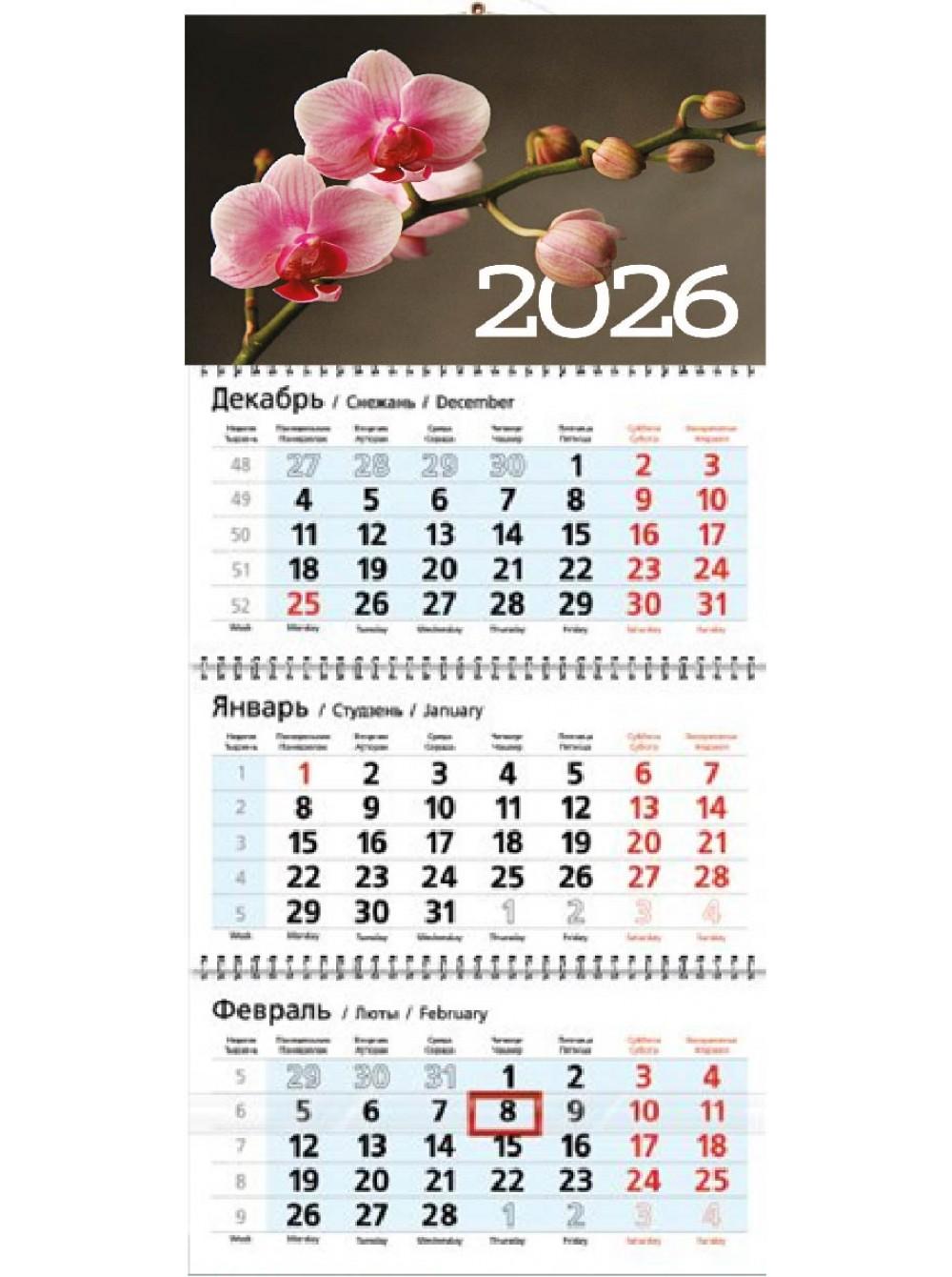 Календарь на 2026 год настенный трехблочный "Орхидея"