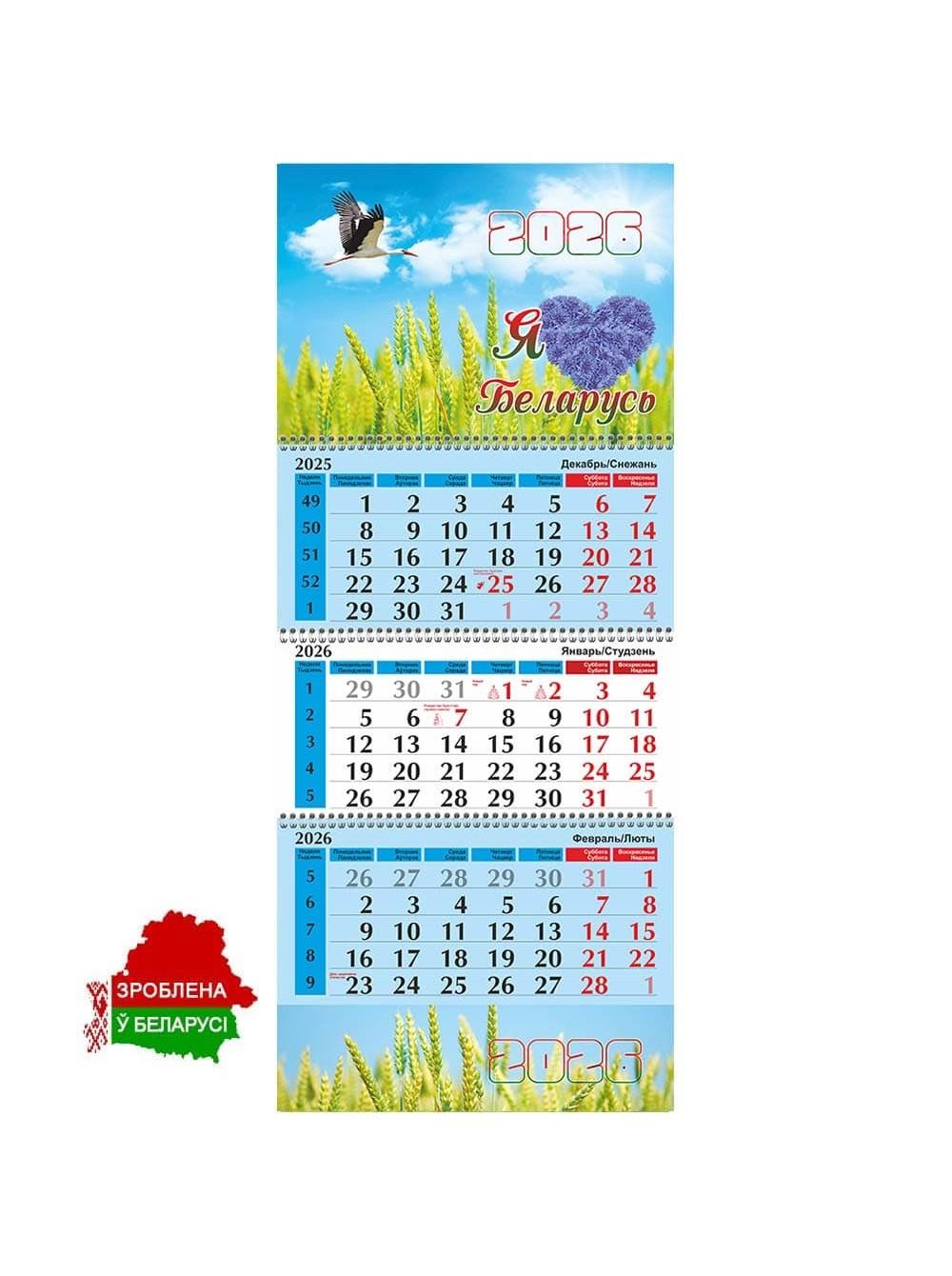 Настенный календарь "Я люблю Беларусь" на 3-х спиралях на 2026г