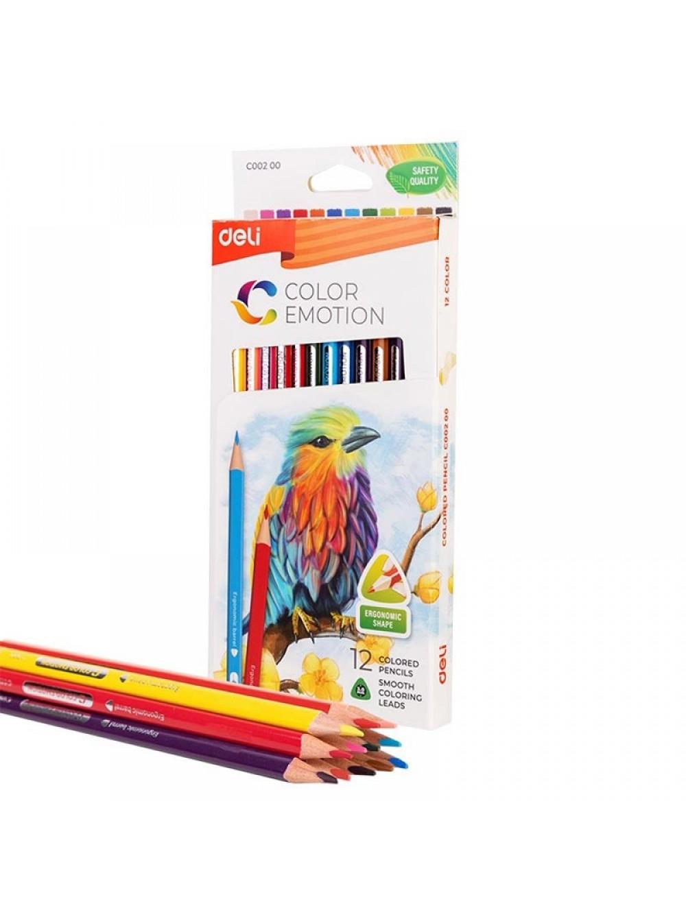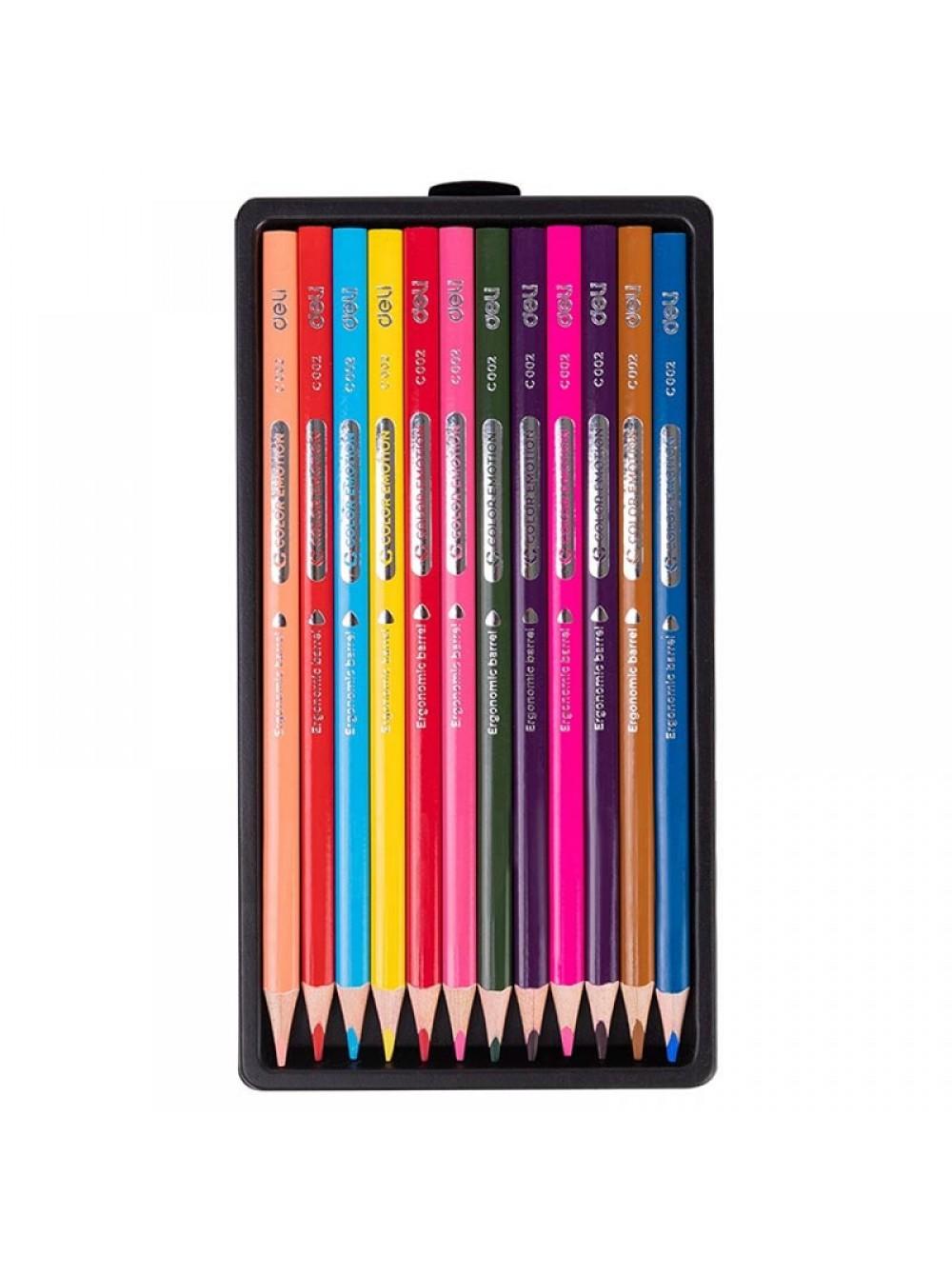 DELI Карандаши цветные деревянные, трёхгранные, 12цв