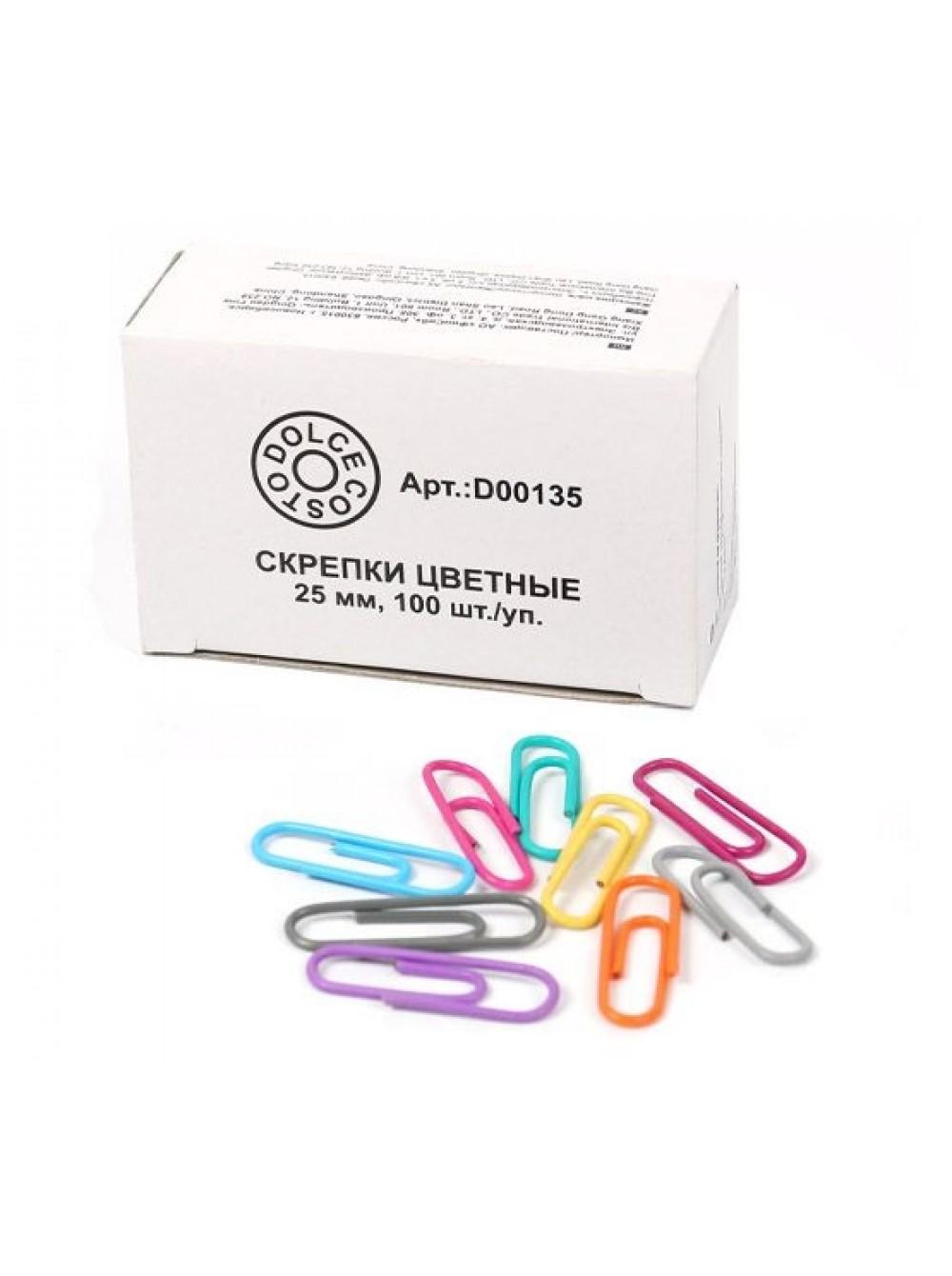 DOLCE COSTO Скрепки канцелярские 25 мм, цветные, 100шт/уп